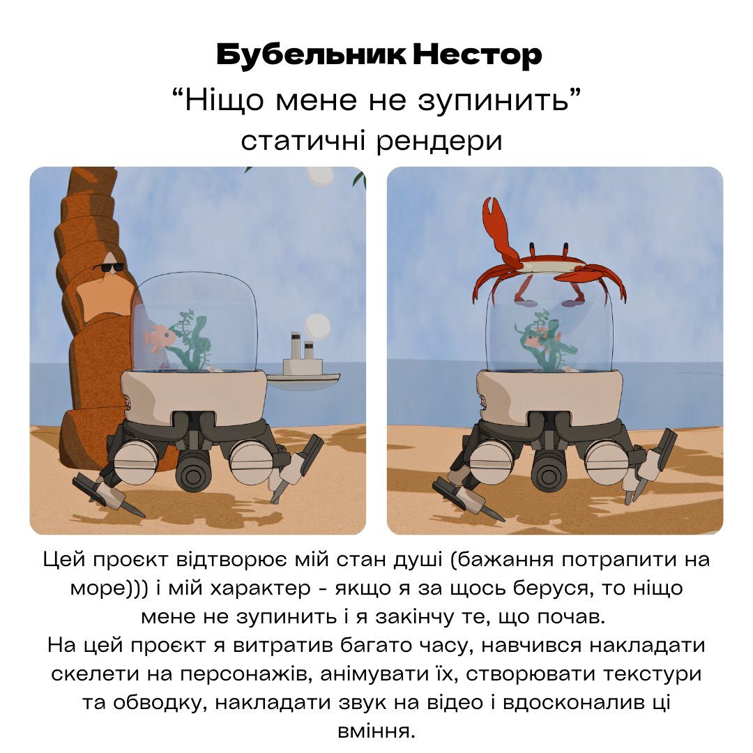 Фінальні проєкти — це повноцінні 3D-анімації, за якими стоїть велика праця, фантазія та наполегливість